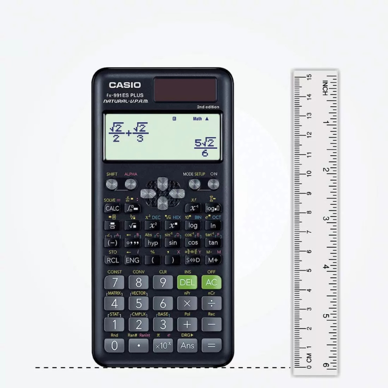 The Casio fx-991ES Plus 2nd Edition is a non-programmable scientific calculator designed for students and professionals who need fast, accurate, and versatile calculation capabilities. With a total of 417 functions, natural textbook display, and solar + battery power, this sleek calculator is ideal for engineering, mathematics, physics, and general academic use.